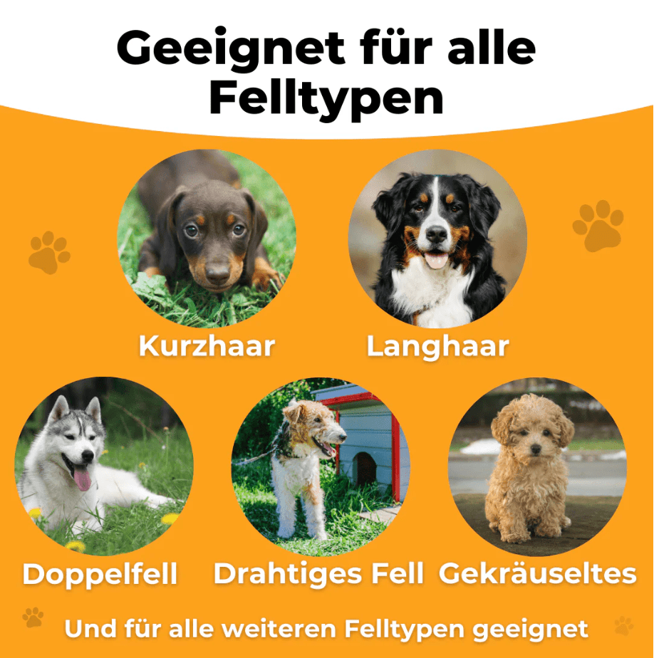 Selbst bei langem Fell sorgt die Bürste für eine gründliche Fellpflege, sodass dein Hund sich wohlfühlt und sein Fell gesund und glänzend bleibt. Egal ob kurzes, langes oder dichtes Fell – die Fellwunder Bürste ist für alle Felltypen geeignet!