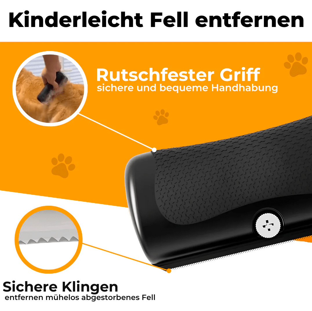 Die sanften Klingen der Fellwunder Bürste gleiten mühelos durch das Fell deines Hundes, ohne zu ziepen oder hängen zu bleiben – fast so, als würde sie durch warme Butter gleiten. Dabei gibt es keine Verletzungsgefahr, da die Klingen speziell dafür entwickelt wurden, schonend und gleichzeitig effektiv die Unterwolle zu entfernen. Dein Hund wird die sanfte Pflege genießen und du profitierst von einem haarfreien Zuhause.