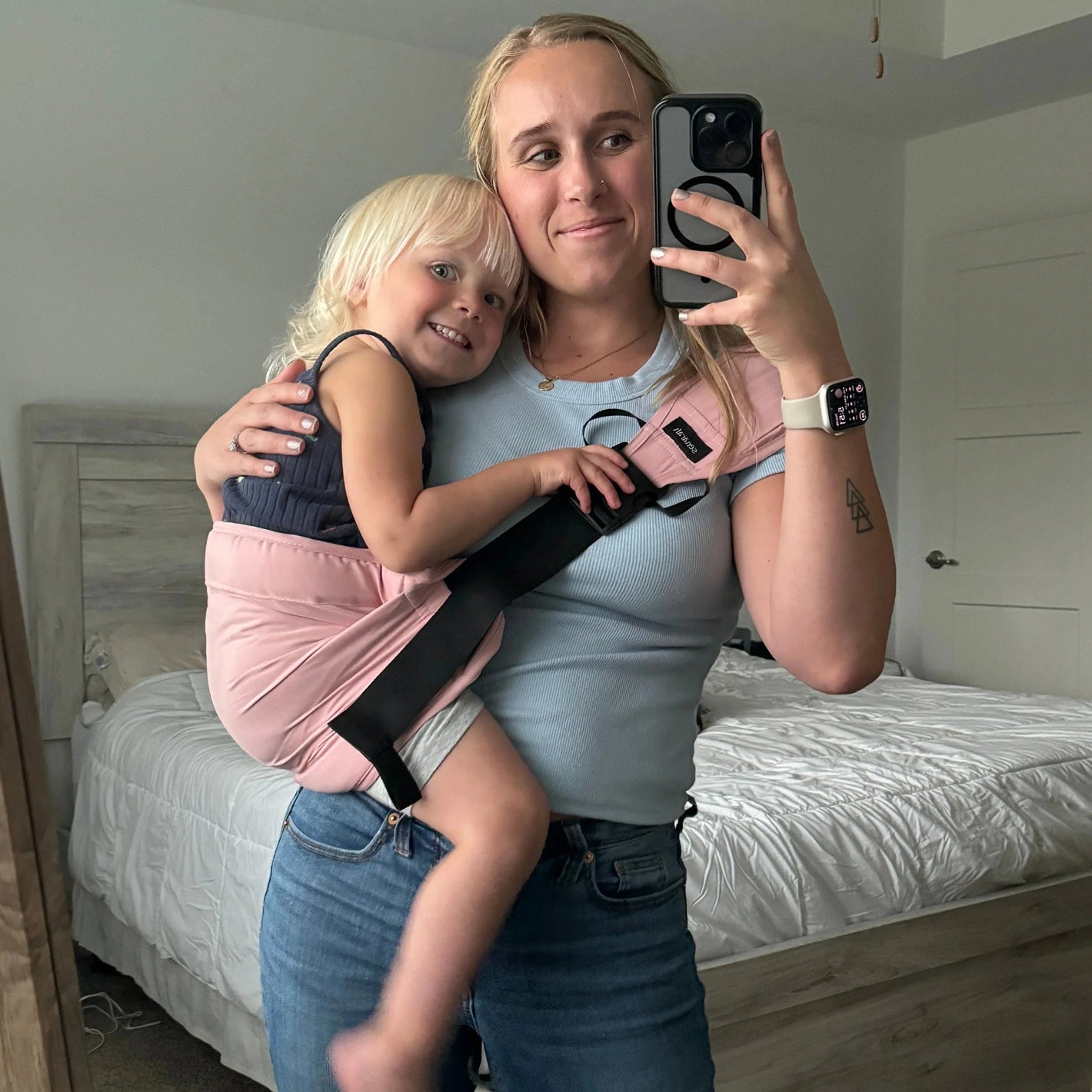 Tous les parents reconnaissent le portage sur la hanche. Lumea™ fonctionne comme un support de portage qui soulage les bras, le dos et les hanches – et répartit le poids de manière uniforme sur le corps.