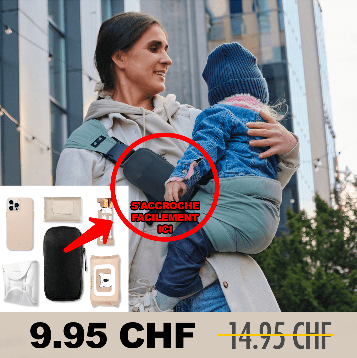Ajoutez notre sac de rangement qui s’accroche au porte-bébé – pratique, léger, tout sous la main.