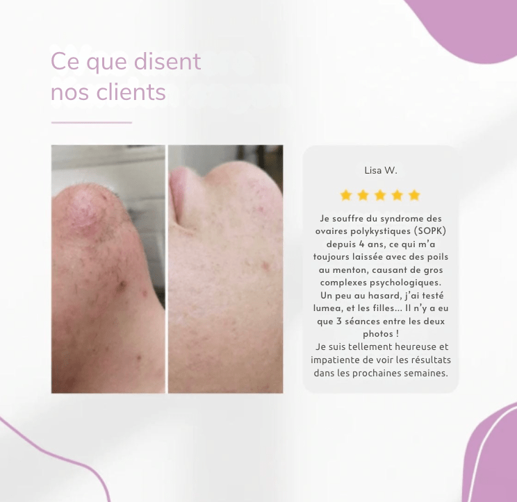 Résultat : la croissance des poils ralentit, les poils deviennent plus fins, plus clairsemés, jusqu’à une réduction permanente de la pilosité avec le temps.